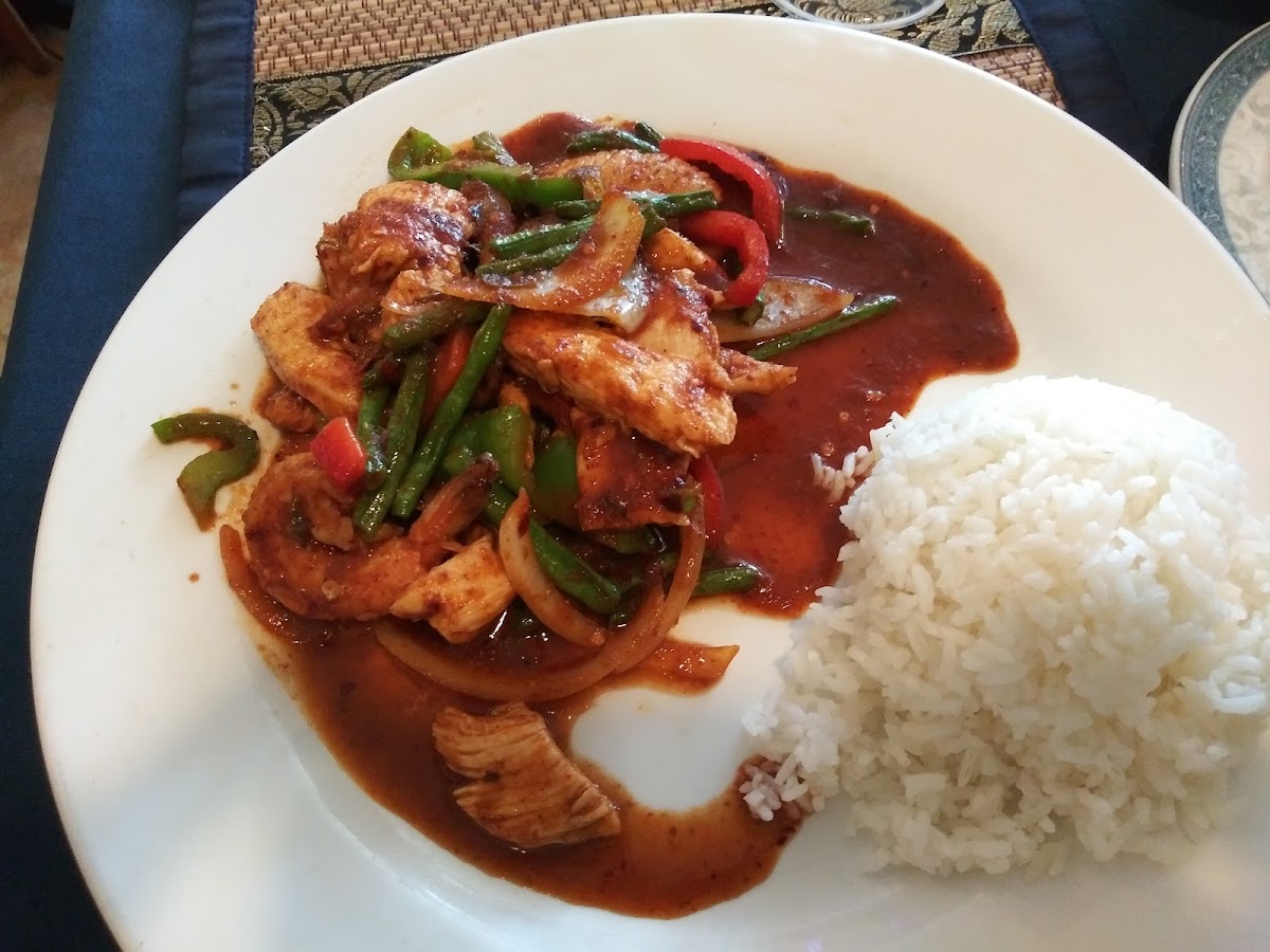 The menu at Thai Villa is extensive, offering a range of dishes that cater to every taste, from mild to spicy. One of the standout dishes is their Pad Thai, which perfectly balances sweet, savory, and tangy flavors, with a generous helping of peanuts and a delicious mix of fresh ingredients. If you're in the mood for something a bit bolder, the Green Curry is a must-try. The creamy coconut base paired with fragrant spices and tender chicken (or your choice of protein) will have you coming back for more. For those who prefer something lighter, the Thai Villa Salad is a refreshing choice, with crisp greens, tangy dressing, and a touch of heat that awakens your taste buds.